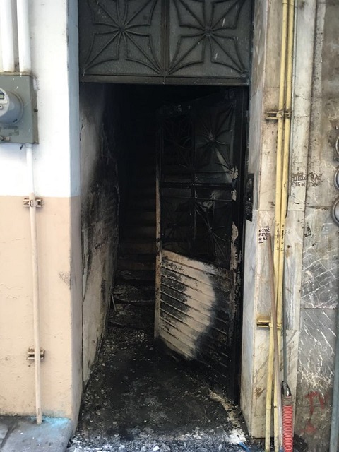 También se especificó que el o los perpetradores del atentado, debieron trasladar el vehículo e introducirlo al pasillo del edificio en la parte de las escaleras, donde posteriormente habrían de iniciar el fuego usando una mecha introducida en el tanque de gasolina del vehículo, tal como se aprecia en las fotografías que acompañan esta publicación.