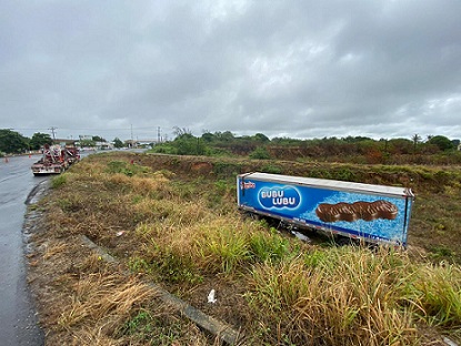 Afortunadamente no hubo personas lesionadas, únicamente daños materiales causados a la caja del remolque, se dice que la lluvia que se a presentado sobre la madrugada del lunes y todavía esta mañana podría ser la causa de que se desprendiera el remolque, ya que el asfalto se encuentra resbaloso.